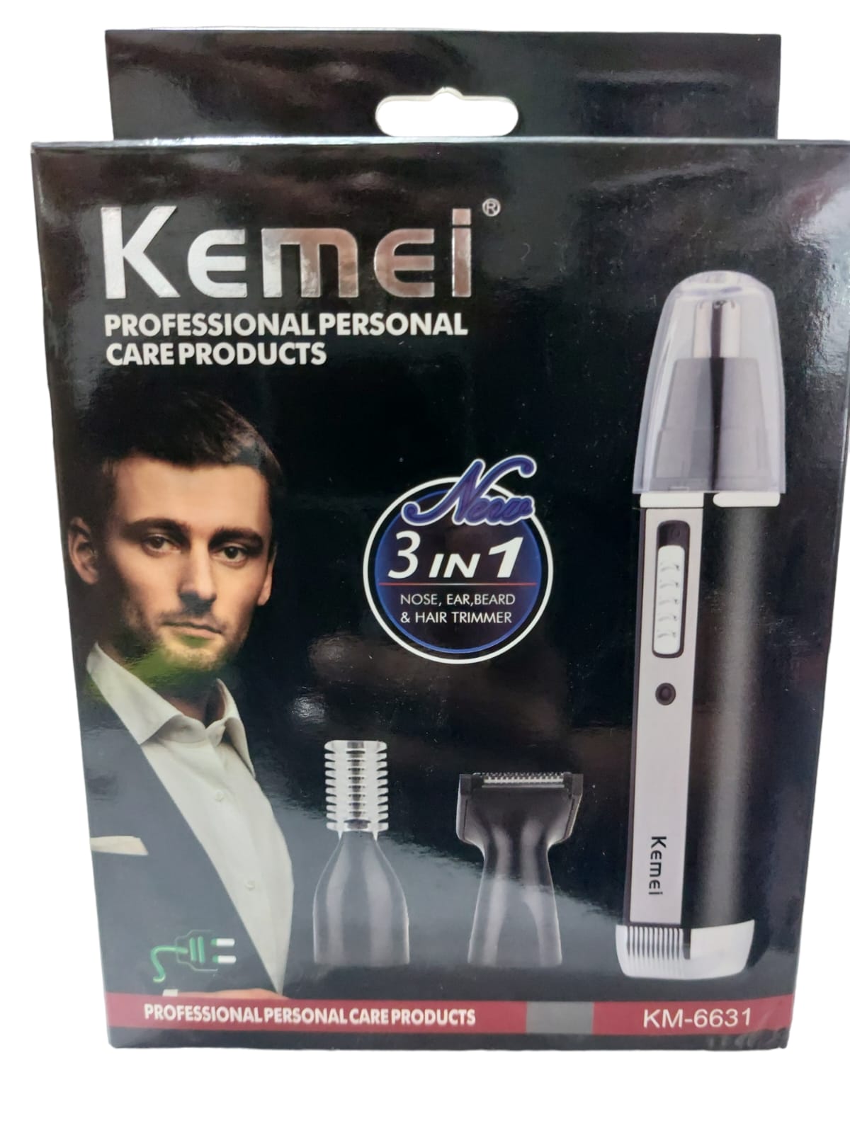 Kemei KM-6631 3 en 1 profesional recargable de nariz y Oreja recortadora de cabello Sobre el productoMarca: Kemei Modelo: KM-6631 Origen: China Material: ABS Voltaje: 220 V Frecuencia: 50Hz Potencia: 2 W Estropajo eléctrico: recargable Tiempo de carga: 8 horas Tiempo de uso: 60 minutos Peso neto: 64g Tamaño: 13*2,4 cm Embalaje: Sellado con paquete de venta al por menor Cantidad: 1 piezas |