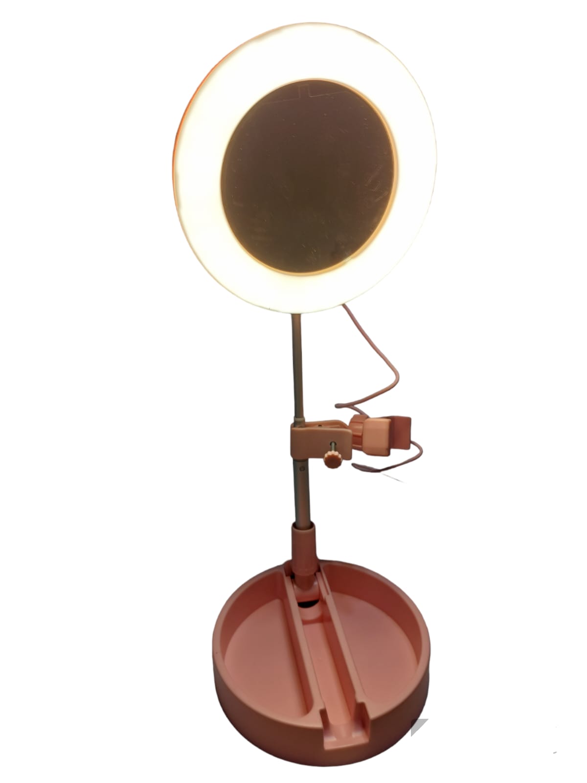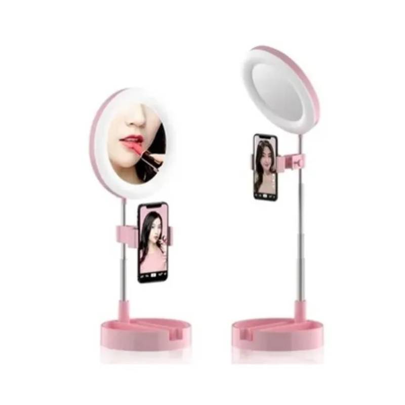 Aro de Luz Led Con Espejo y Porta Celular Para Fotos Recargable