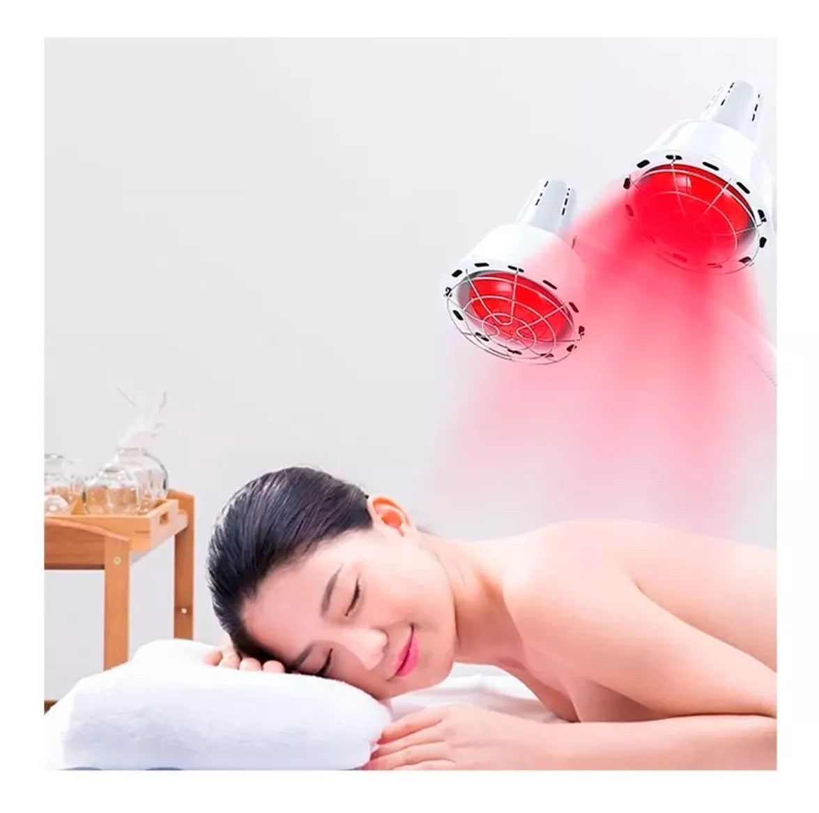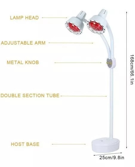 Esta lámpara infrarroja multiusos puede ser utilizada no solo para aliviar dolores musculares, desinfectar y esterilizar, sino también para iluminar el espacio y calentarse en invierno. cabeza de la lámpara giratoria, soporte flexible que permite de apuntar la lámpara hacia los puntos de acupuntura o la parte que se desea calentar. Temperatura ajustable fácil de controlar y regularlo a la temperatura correcta.