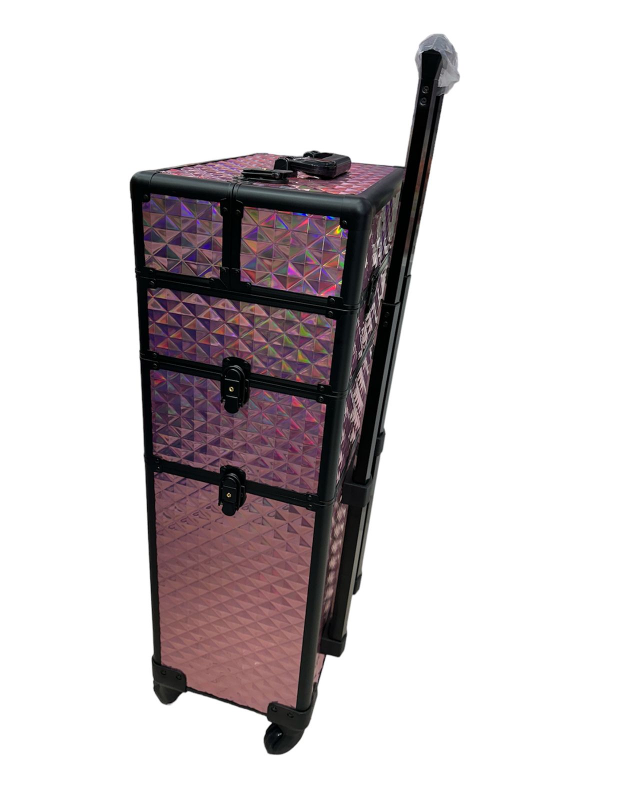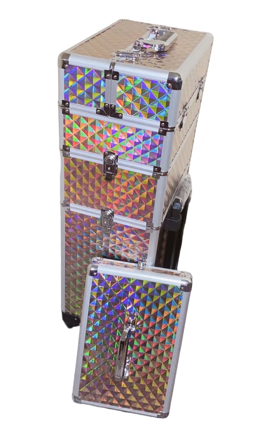 Organízate como un profesional con nuestra Maleta Organizadora de Maquillaje, Manicura y Peluquería. Ofrece 4 bandejas despegables, 4 ruedas que giran 360 grados, 2 llaves, asa ajustable en los 2 niveles, 4 broches de seguridad y una bandeja removible para guardar tus artículos de maquillaje, cosmética, nail art y otros accesorios de manera organizada.