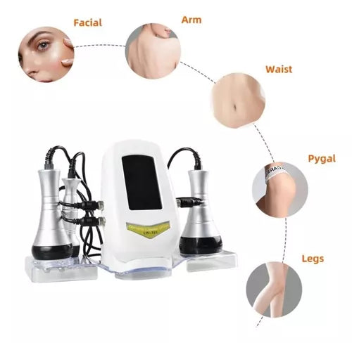 Incorpora los tratamientos mas altamente efectivos a nivel estético facial y corporal. Este equipo es perfecto e ideal para tratamientos reductores, moldeadores, tonificación y de rejuvenecimiento facial y corporal cuenta con un cabezal de cavitación de 40khz capaz de romper eficazmente las grasas y adiposidad localizada, adicional cuenta con 2 cabezales para radio frecuencia facial y corporal con los cuales puedes tonificar y lograr una piel mas joven y tersa sin flacidez ni celulitis. Es el equipo perfecto y complemento ideal para tu estética o spa un equipo de excelente calidad que te proporcionara excelentes resultados.