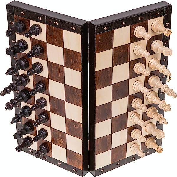 Las piezas de ajedrez magnéticas se fijan firmemente al tablero y no se caerán durante el juego. Tablero plegable ligero y portátil para facilitar el transporte.