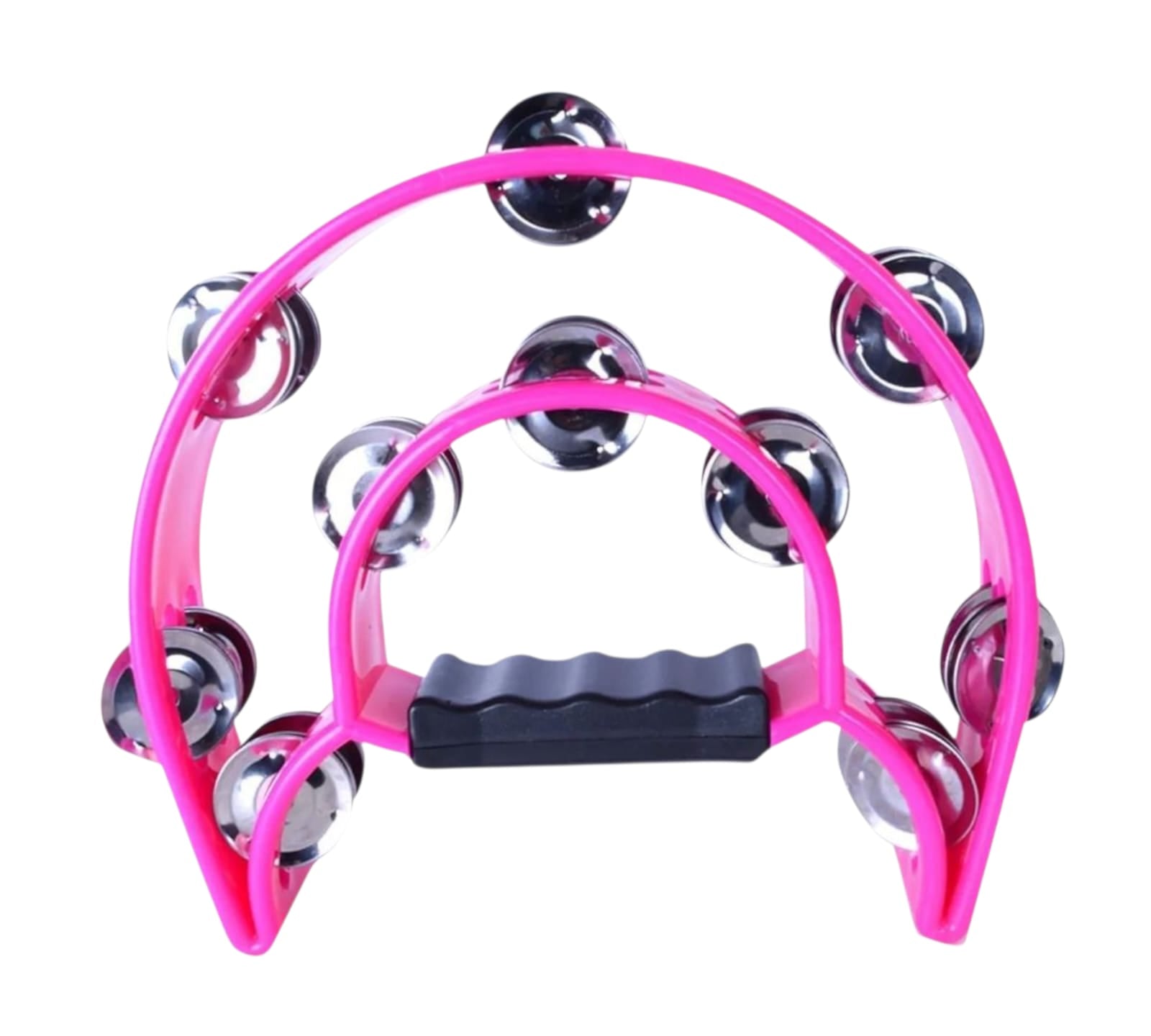 Este pandero fucsia de 20x20 cm es una excelente opción para quienes buscan un instrumento musical compacto, duradero y con un sonido vibrante. Su estructura en plástico de alta resistencia y sus 20 pares de sonajas metálicas en doble fila garantizan un tono claro, brillante y alegre, ideal para acompañar diversos estilos musicales, celebraciones o actividades educativas.