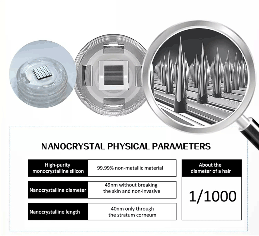 2 favoreciendo la absorción del producto para el cuidado de la piel abriendo el canal de absorción de la piel, que está lejos de ser hecho por instrumentos ordinarios, por lo tanto, la tasa de absorción del potenciador de nanoporación marrowinto no solo es un nuevo concepto de dispositivo de cuidado de la piel sino también una tecnología innovadora en el campo de la estética.