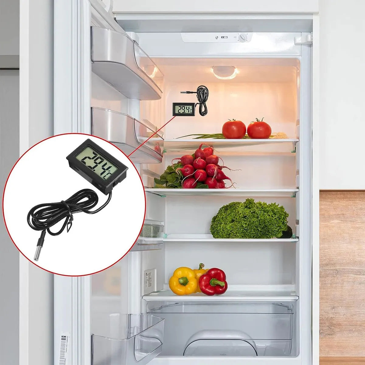 Tiene un aspecto simple, diseño discreto y una pantalla LCD fácil de leer. Hecho de materiales plásticos duraderos, ideal para su uso en refrigeradores, enfriadores y congeladores profundos, y el termómetro tiene un rango de -50 °C a + 110 °C.